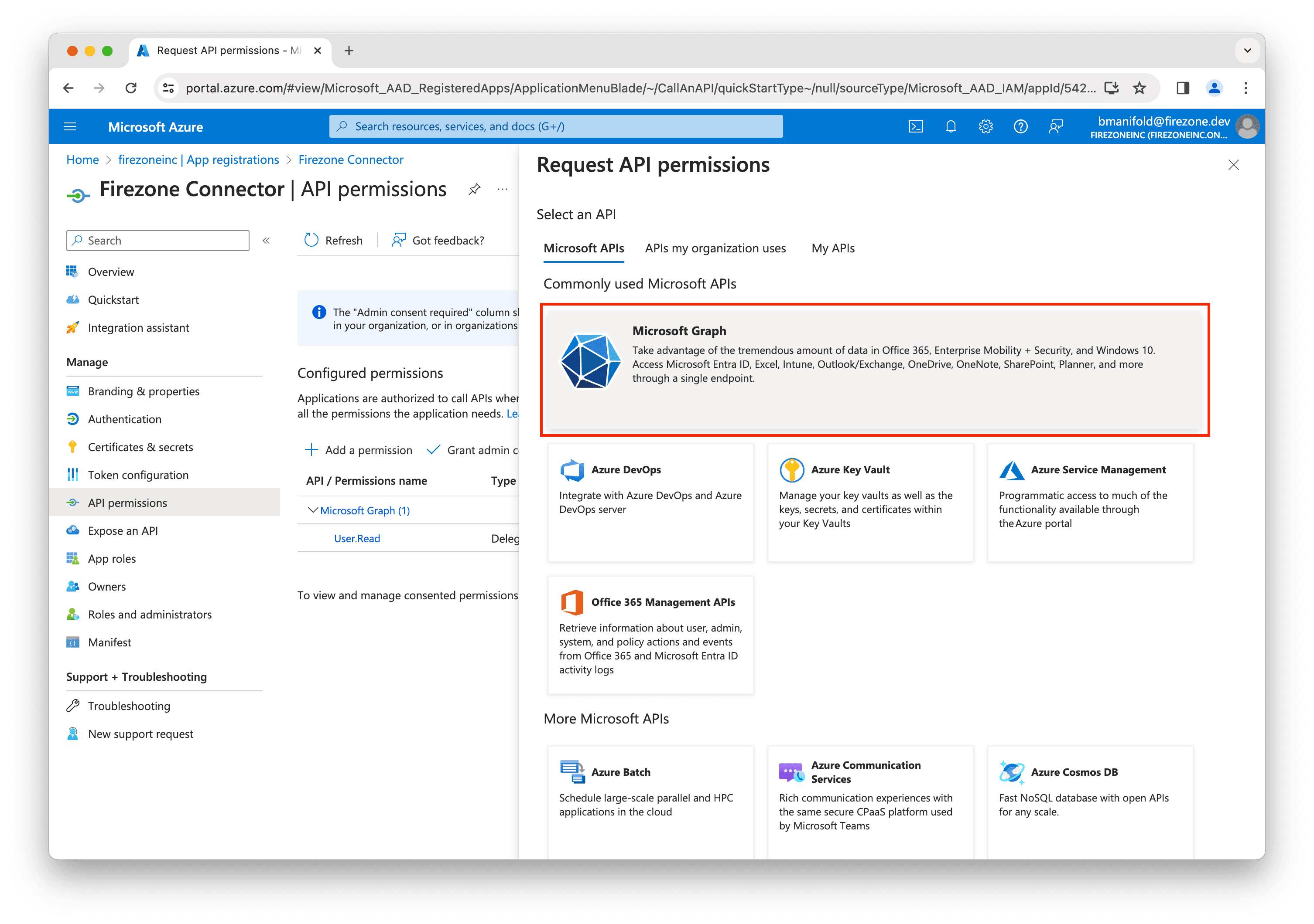 Next, you'll need to add permissions to the app registration to allow Firezone to read user and group data from your Entra ID account.