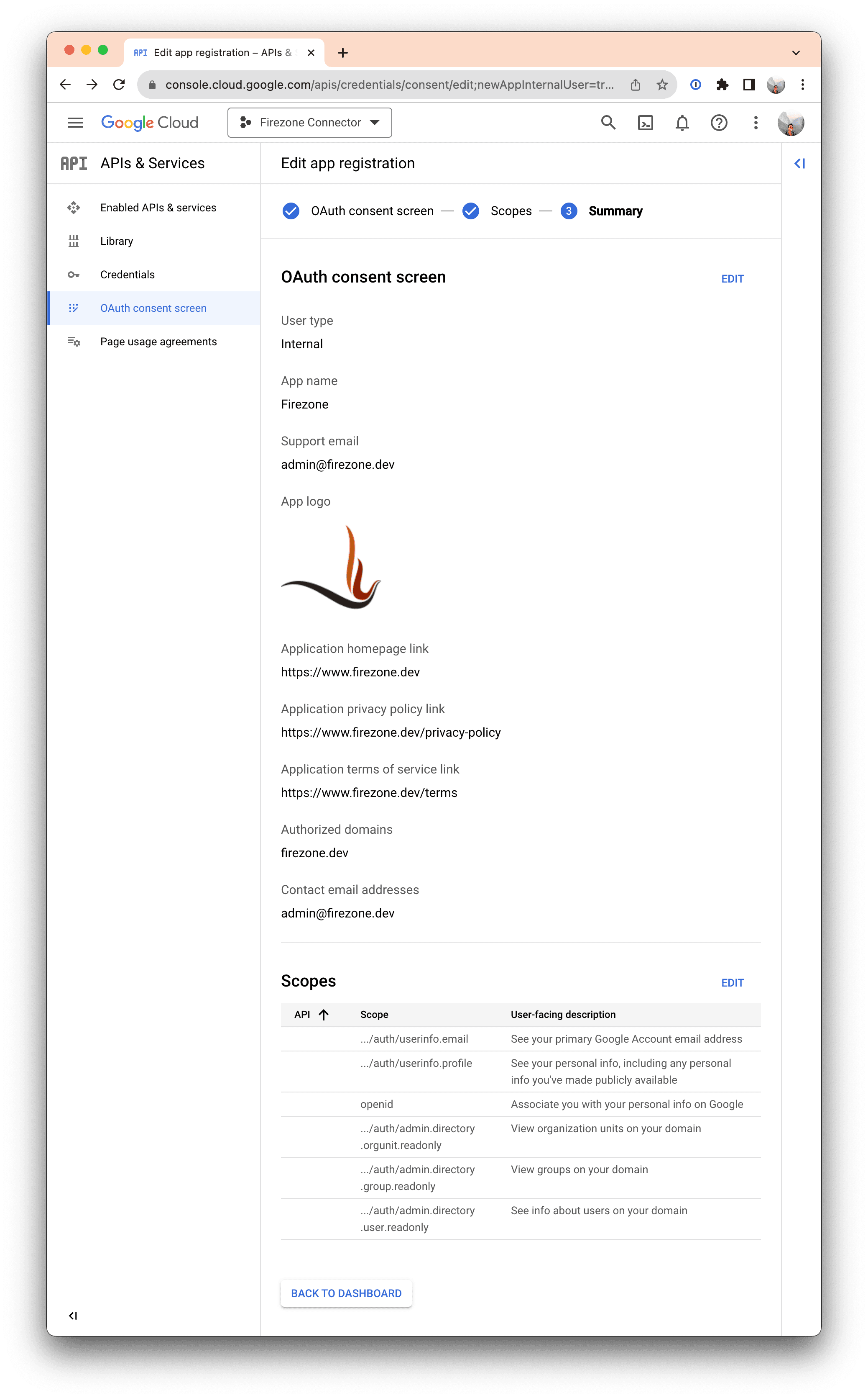 OAuth scopes determine what information the Firezone connector is allowed to receive when a user authenticates.